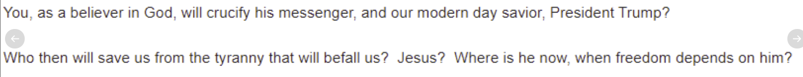 Much evangelical support for Trump is not based on careful political calculus, but has instead led evangelical Christians to effectively convert from traditional Christianity to the worship of the American red tribe’s false god of political power. If you spend more time watching Fox News defend Trump than attending church, you might be worshipping someone other than Jesus. Here’s a sad example from a CT reader that Ted Olsen, the Editorial Director at CT, received by email: