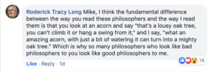 Philosopher Mike Huemer has recently blogged that most of the great philosophers make terrible arguments, and are great primarily because they turned out to be influential (this follows a previous post on history of philosophy, which I responded to as well). Mike received pushback, including a comment from Roderick Long, which I wanted to explore a bit. Here’s Long: